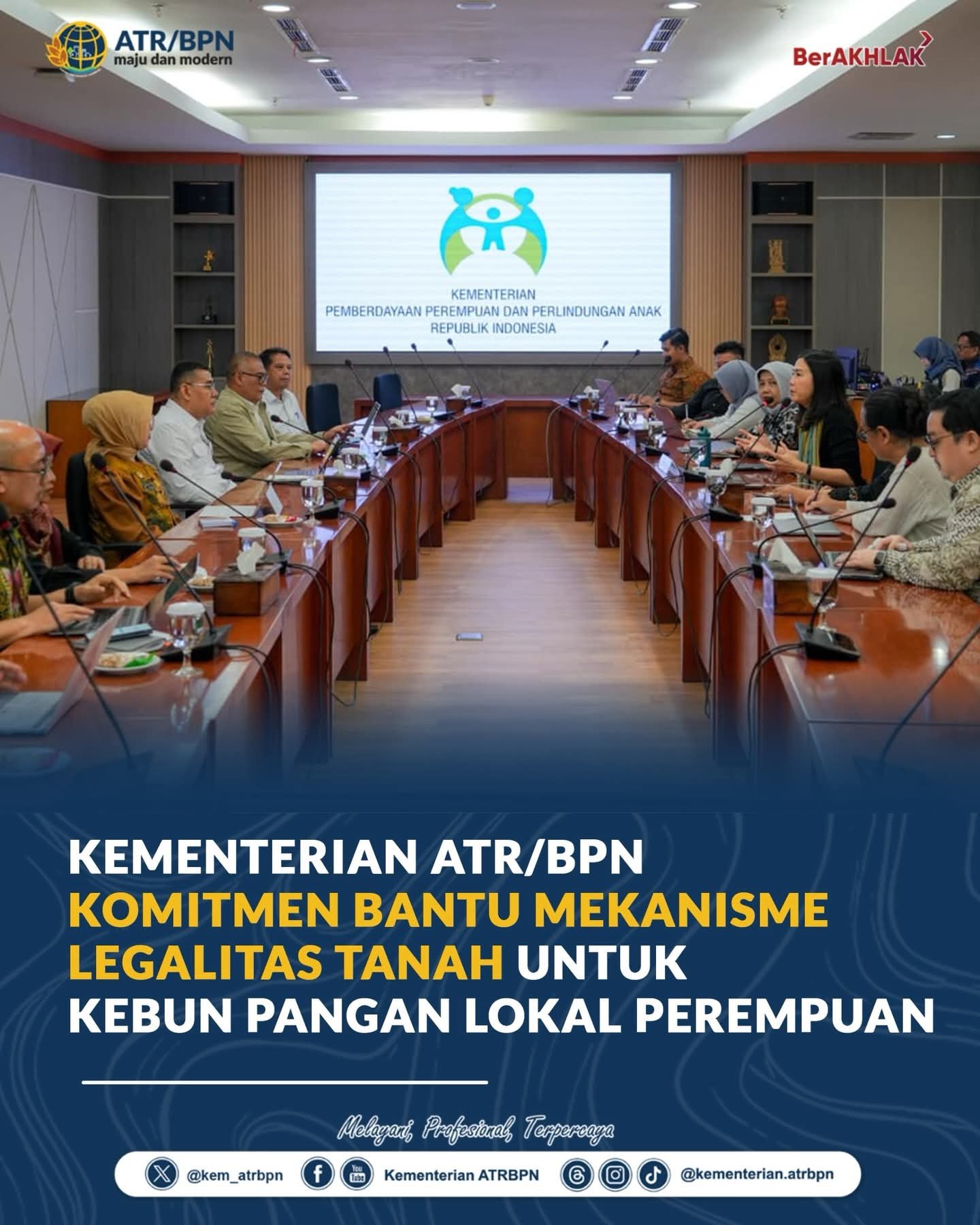 JAKARTA – Wakil Menteri Agraria dan Tata Ruang/Wakil Kepala Badan Pertanahan Nasional (ATR/BPN), Ossy Dermawan, menegaskan komitmen Kementerian ATR/BPN dalam mendukung pelaksanaan program Kebun Pangan Lokal Perempuan (KPLP) yang diinisiasi oleh Kementerian Pemberdayaan Perempuan dan Perlindungan Anak (KemenPPPA).