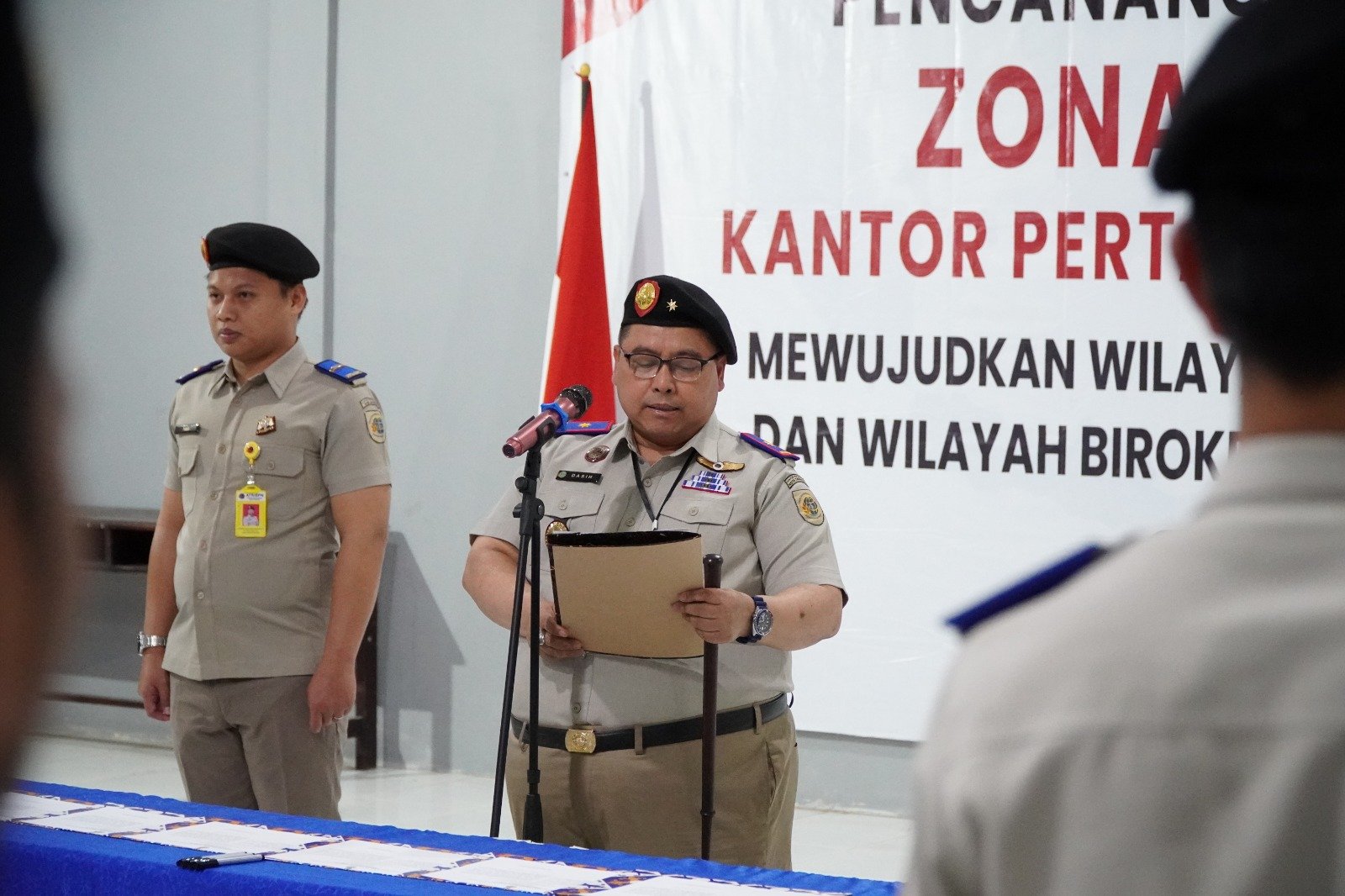 TARAKAN – Kantor Pertanahan Kota Tarakan mencanangkan Zona Integritas menuju Wilayah Tertib Administrasi dan Bersih (WTAB) Tahun 2026 pada Selasa, 24 Februari 2026. Pencanangan ini menjadi langkah awal dalam memperkuat komitmen integritas dan profesionalisme seluruh jajaran pegawai.