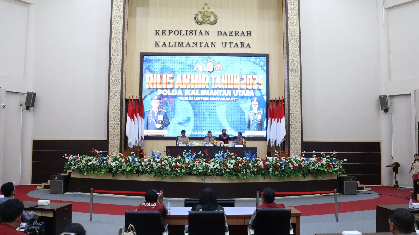 Bulungan, Kaltaraglobal.news – Kepala Kepolisian Daerah Kalimantan Utara (Kapolda Kaltara) Irjen Pol. Djati Wiyoto Abadhy, S.I.K., menyampaikan Rilis Akhir Tahun 2025 dihadapan awak media dan dihadiri oleh seluruh PJU Polda Kaltara yang digelar di Ruang Rupatama Bhara Daksa, Tanjung Selor, Rabu (31/12/2025).